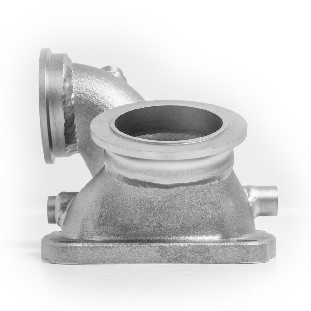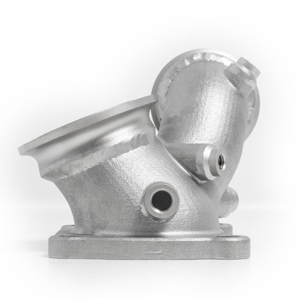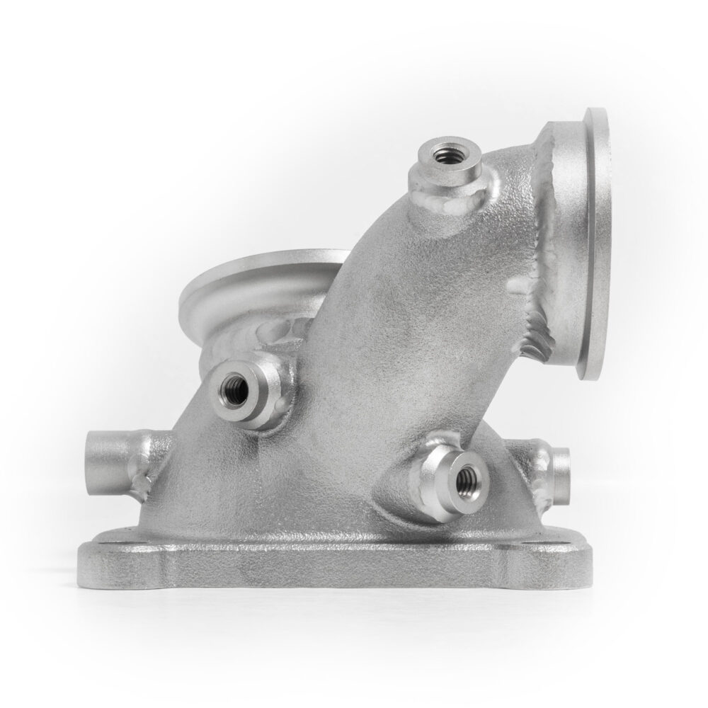 The turbo Turbo Manifold is cast 304 stainless steel, and is designed to allow for the most efficient exhaust flow possible, working around the limitations of the factory “headifold” design.