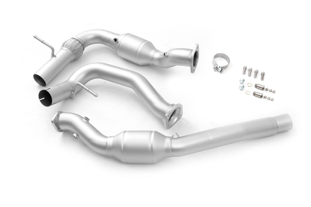 This QKspl™ downpipe system is manufactured for a perfect fit and finish. This downpipe will work perfectly with your stock cat back for a stealth install or along with our forthcoming Austenite™ exhaust system for the most pure sound. Thanks to a CNC cut flange, the downpipes will fit the factory cat-back perfectly.
