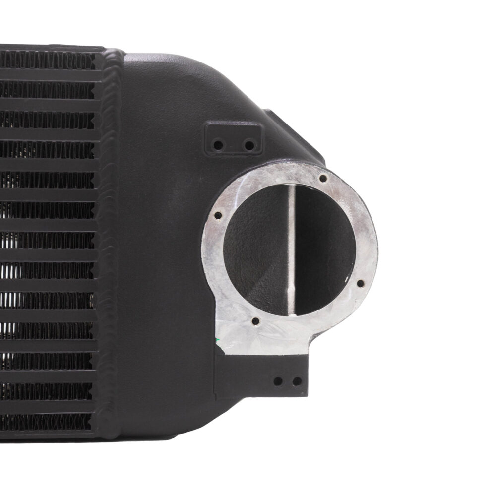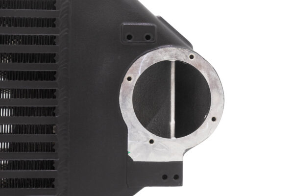 When we designed the Focus RS ∆Core™ FMIC, we wanted this to be the last FMIC that you would need to buy for the platform. With this in mind, we made the outlet for the end tank on the cold side upgradeable. This means that whenever large power levels are hit, a bigger turbo is installed, or the most flow possible is needed, the entire core doesn’t have to be replaced in order to gain a full 2.75″ outlet from intercooler through our cold side charge pipe.