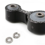 Instead of placing all of the force on the center bushing pin, the load is distributed throughout the bushing with the CNC lathed aluminum spacers. This load distribution increases the effective stiffness of the bushing under engine loads allowing a lower durometer bushing to provide more stiffness.