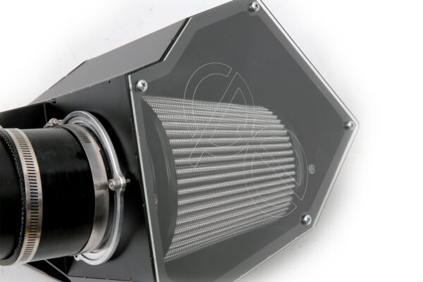 The intake tube then attaches to the air box through a 5-ply silicone elbow and a CNC-lathed aluminum bellmouth. This velocity stack bellmouth smoothly compresses the air to provide a minimal amount of energy loss which translates to a higher air speed through the tube. We include a 4.00” air filter specially designed to give the most free flowing air flow possible. Additionally this comes with your choice between Dflow™ or SynOil™.