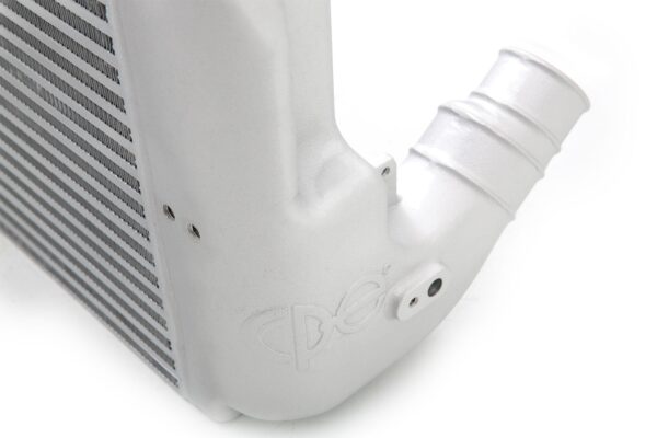 As always, the cp-e™ intercooler includes cast endtanks that are welded and pressure tested with the core. What sets these endtanks from the rest is the engineering behind their shape and internal design. Hours of design and computer flow diagrams have been put into the tanks’ design to virtually eliminate turbulence within them. Many times, upgrading an intercooler causes increased turbo-lag, and an overall pressure loss. This is because of the large size of the core and the turbulence within the endtanks. By designing the endtanks to be smaller, and more efficient cp-e™ has found a way to minimalize turbulence in order to keep the drivability of the car high, while still enlarging the intercooler drastically.