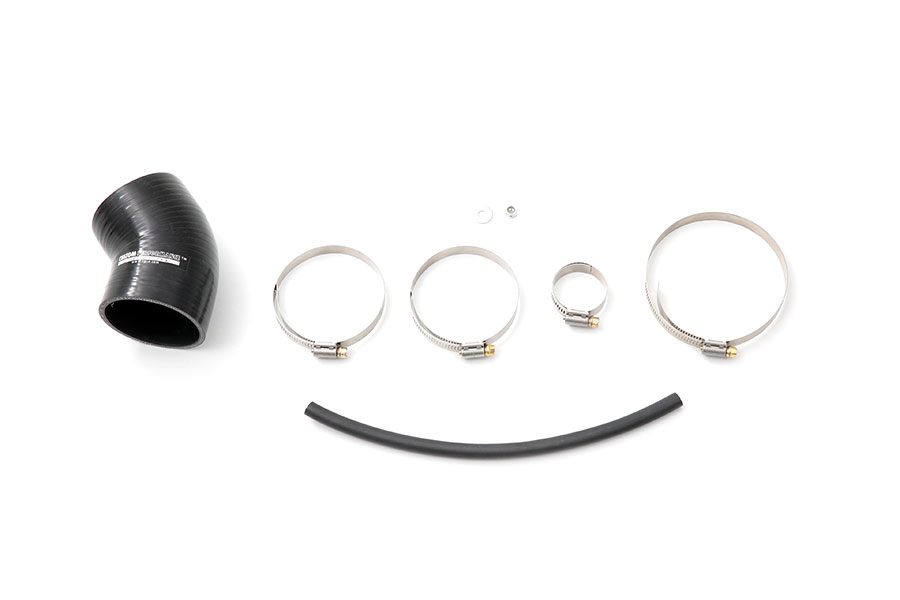 The pipes also come with slick details like steel wire re-enforcement to prevent collapsing under vacuum, it features all stock brackets and mounting tabs, and also utilizes steel inserts for air intake and bypass valve recirculation attachments. The Nviscid™ 4.00” Turbo Inlet Pipe comes with all hardware necessary to avoid modification to the vehicle during installation, and to provide easy mounting to intakes larger than stock/2.50”, like the cp-e™ intakes.