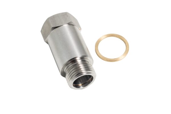 This O2 sensor extension and brass gasket help complete your build. Made of 304 Stainless Steel with M18 x 1.5 thread size. Must be used with the O2 Sensor Fitting for a complete kit.